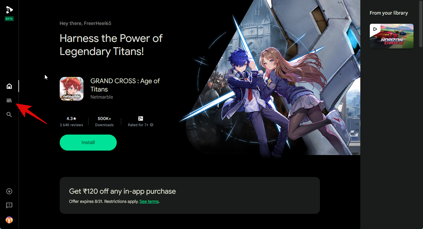 Du kan också klicka påBibliotekikonen i det vänstra sidofältet för att se ditt spelbibliotek.