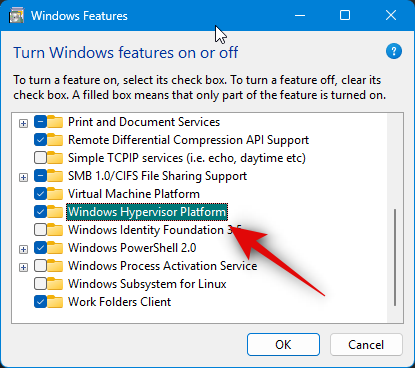 Scrolla till botten och markera rutan förWindows Hypervisor-plattform.