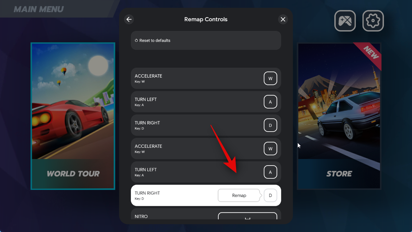 Du kan också klickaÅterställ till standardinställningarhögst upp för att återställa dina ommappningar.