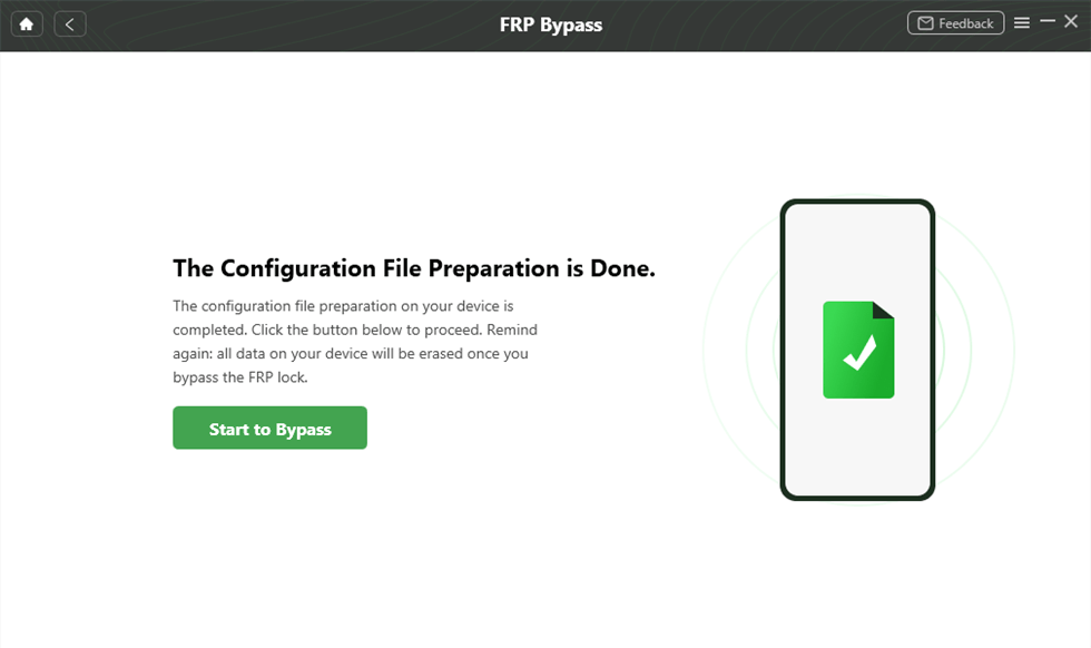 Después de completar los pasos anteriores, comenzará a omitir el bloqueo de FRP. Cuando se complete el proceso de omisión, su dispositivo se reiniciará.
