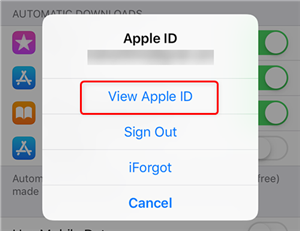 4.En la parte superior de la pantalla, verá su ID de Apple en la lista. Toque su ID para acceder a la configuración de la cuenta. Luego, toque Ver ID de Apple en el mensaje en su pantalla.