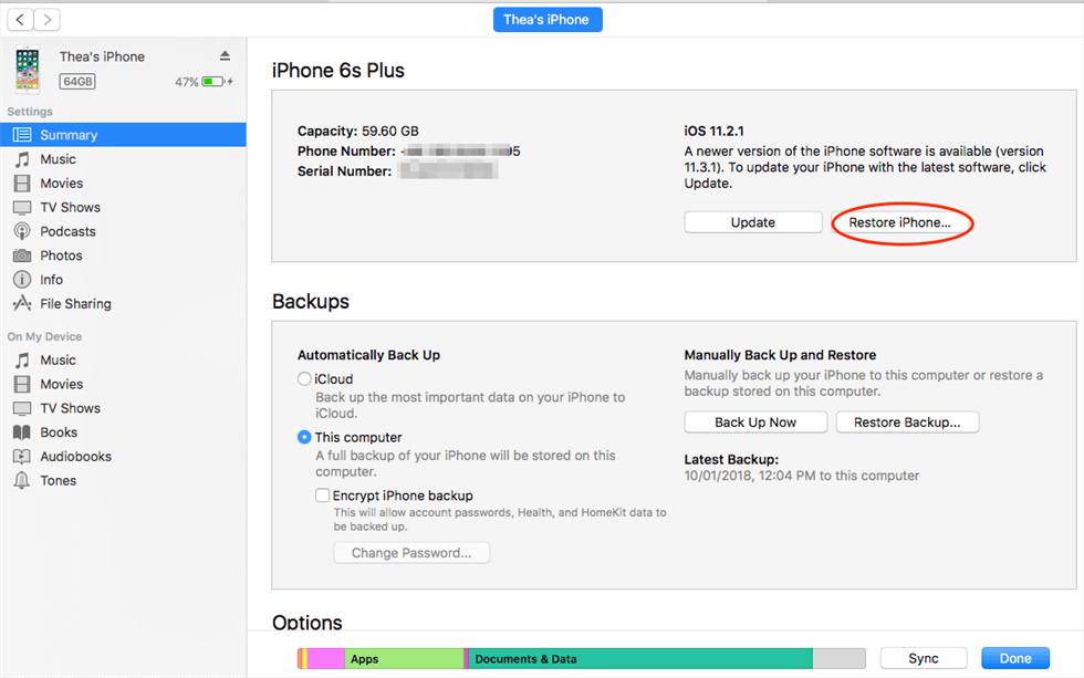 1. Usar iTunes para hacer una copia de seguridad de un iPhone deshabilitado
