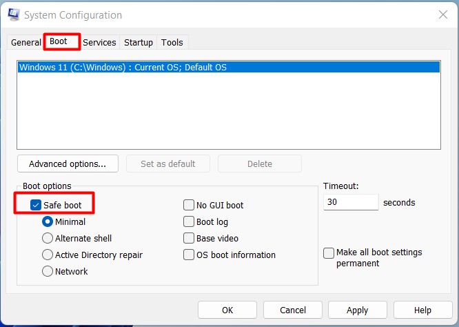 Paso 3:ElegirArranque seguroy confirma conDE ACUERDO.