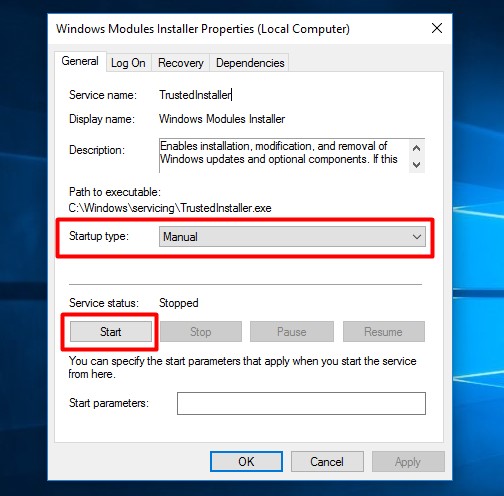 Paso 3:Vuelva a cargar el módulo Trusted-Installer escribiendoinstalador de confianza net start