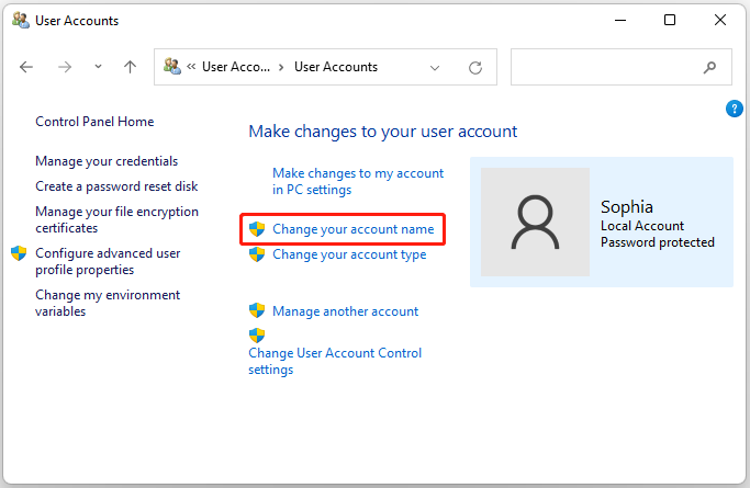 Paso 4. Haga clic en "Cambiar el nombre de su cuenta".