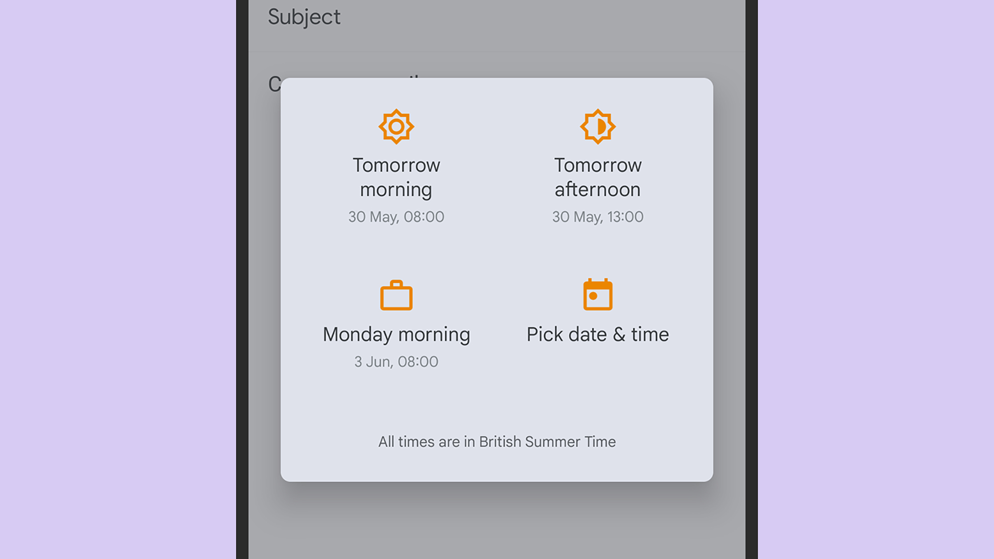 Cuando estés redactando un mensaje en la aplicación Gmail para Android o iOS, toca los tres puntos en la esquina superior derecha y luego eligeProgramar envío. Verás algunos horarios sugeridos o puedes configurar uno personalizado tú mismo.