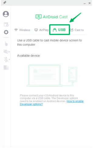 Elija el modo USB en AirDroid Cast