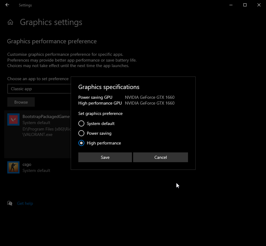 Configuración de gráficos> Preferencia de gráficos> Alto rendimiento