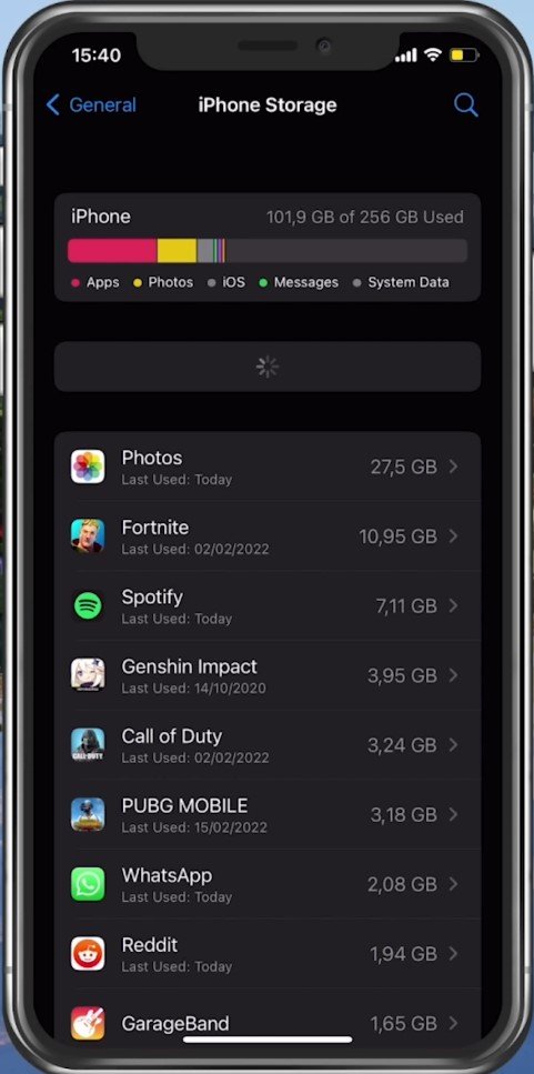 Configuración de iPhone > General > Almacenamiento de iPhone