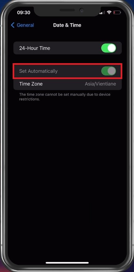 Algunas configuraciones pueden impedir que su ID de Apple se verifique adecuadamente. Primero, debes establecer la configuración de fecha y hora en automática. En su aplicación de configuración, navegue hastaGeneraly tocaFecha y hora. Aquí, habilite elEstablecer automáticamenteopción.