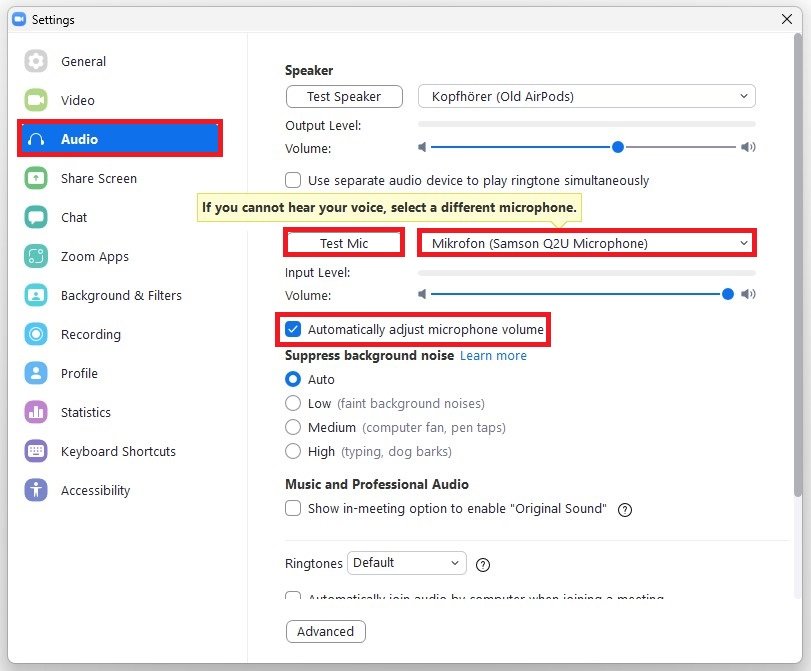 Primero, echaremos un vistazo a la configuración de audio de Zoom.