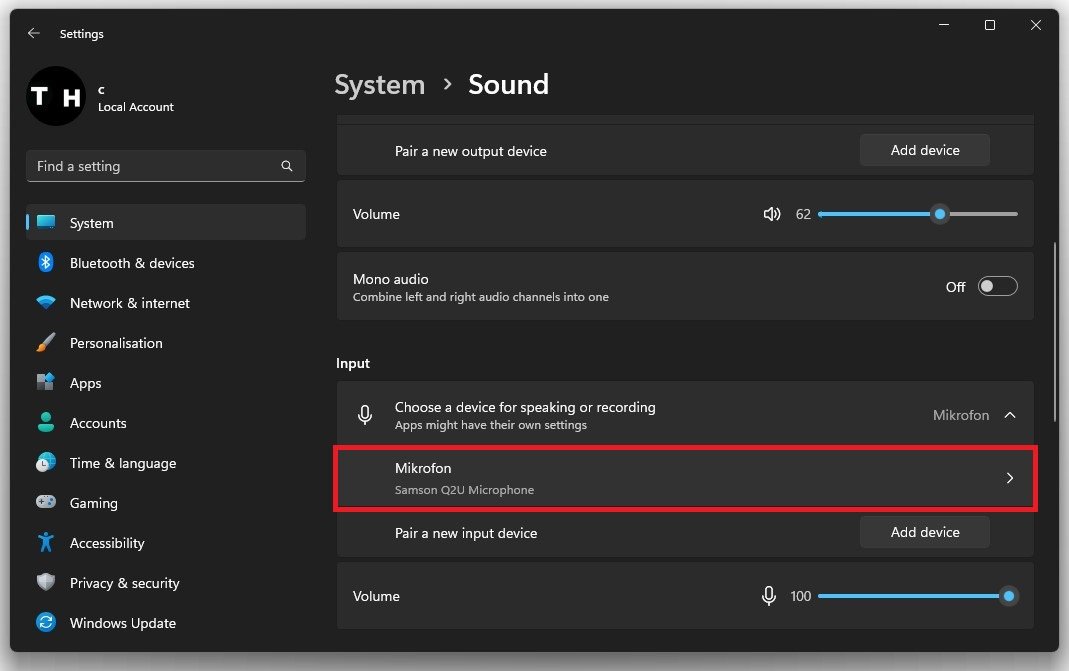También puede iniciar un formulario de prueba de micrófono aquí. Si no escucha ninguna entrada de sonido durante la prueba de sonido, asegúrese de que un interruptor de hardware no silencie su micrófono y que no esté defectuoso.