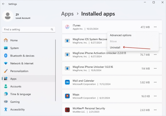 Paso 3.Busque o escriba iTunes y haga clic enMáspara desinstalar iTunes.