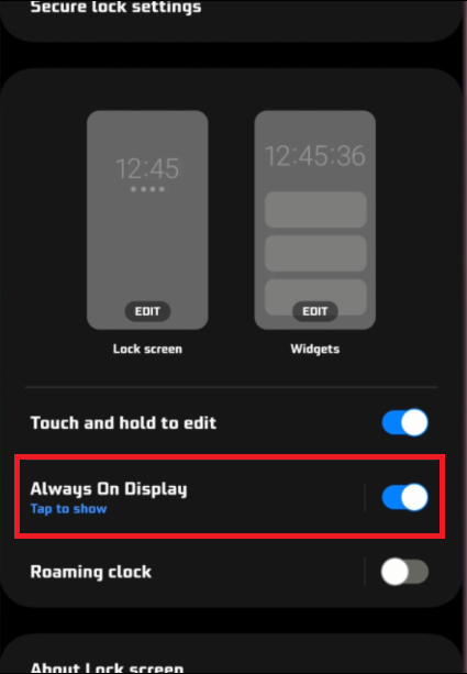 Encontrar "Siempre en pantalla":En la configuración de la pantalla de bloqueo, seleccione la función "Siempre en pantalla" o "AOD". Un toque rápido lo llevará a un mundo de opciones de personalización.