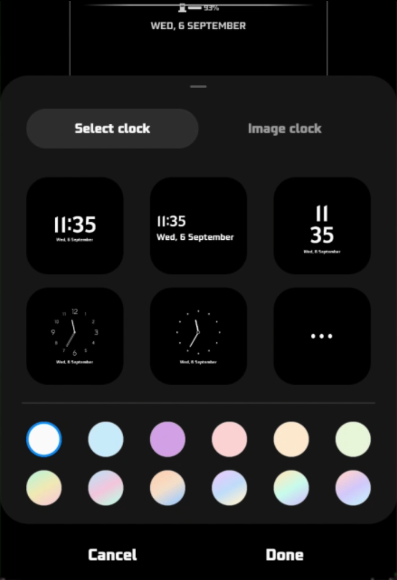 ¿Puedo volver al estilo del reloj original si cambio de opinión?Sí, puedes cambiar el estilo del reloj de la pantalla de bloqueo en cualquier momento volviendo a visitar la opción "Estilo de reloj" en la configuración de "Visualización siempre activa". Aquí puede elegir un nuevo estilo o volver al original.