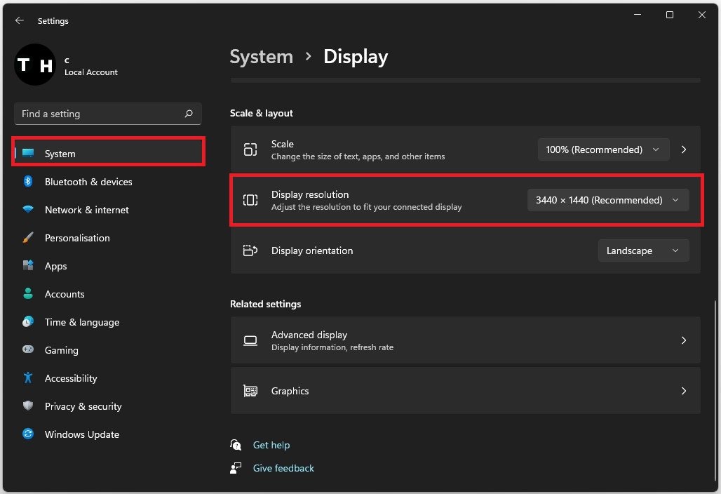 Desplázate hacia abajo hasta tuEscala y diseñoopciones para obtener una vista previa de la resolución de monitor nativo recomendada.