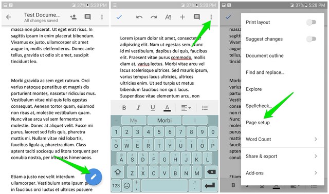 El proceso para cambiar la orientación de la página en las aplicaciones Google Docs para Android e iOS es el mismo, por lo que solo le mostraré cómo hacerlo en Android. También puedes seguir estas mismas instrucciones en dispositivos iOS:
