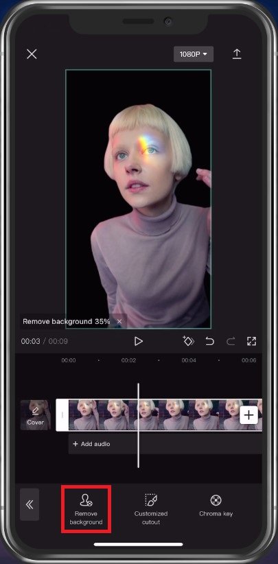 Luego verá un par de opciones. SeleccionarQuitar fondo. Esto tomará un par de segundos para procesar el video y eliminar el fondo. Puede que por ahora no esté perfectamente cortado. Si este es el caso, puedes eliminar el fondo manualmente.