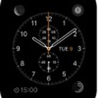 La esfera del cronógrafo es perfecta para cronometrar con precisión hasta el milisegundo. Puede cambiar el color de la cara y los detalles del dial. También puedes agregar las siguientes complicaciones: fecha, calendario, fase lunar, salida y puesta del sol, clima, bolsa, resumen de actividad, alarma, cronómetro, duración de la batería y reloj mundial.