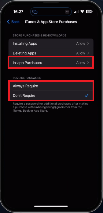 En la configuración de “Compras de iTunes y App Store”, active la opción “Requerir siempre” mientras mantiene habilitada la configuración de “Compras dentro de la aplicación”. Esto no impedirá ninguna transacción, pero requerirá una contraseña para las compras en este dispositivo, lo que garantizará una experiencia segura.