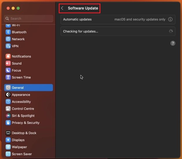 Abre tuPreferencias del sistema. En esta ventana, haga clic enActualización de software. Aquí debería poder descargar la última actualización en caso de que haya una disponible. También se le pedirá que reinicie su Mac una vez que se descargue la actualización. Reiniciar su dispositivo también puede solucionar problemas de bloqueo e inicio de aplicaciones. Luego puedes intentar abrir la aplicación nuevamente.