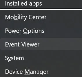 - Presione W + X para abrir el menú de energía y haga clic en Visor de eventos.