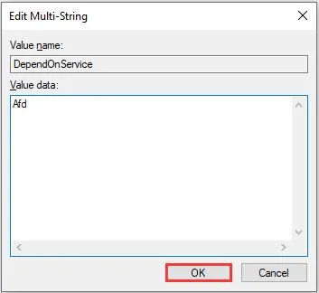 - Haga doble clic en DependOnServices y elimine todo lo que hay en los datos del valor. Luego haga clic en Aceptar para confirmar los cambios.