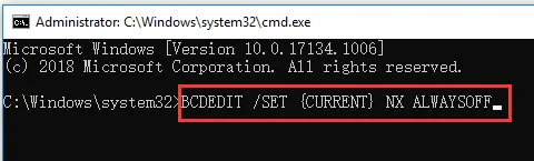 BCDEDIT /SET {CURRENT} NX SIEMPRE APAGADO