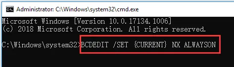 BCDEDIT /SET {CURRENT} NX SIEMPRE