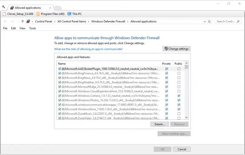 Paso 5: Ubique Fortnite en la lista y haga clic en las casillas de verificación en Privado y Público.