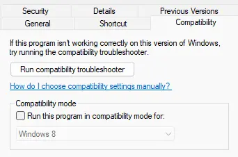Paso 2: Se abrirá un nuevo cuadro y haga clic en la pestaña Compatibilidad.