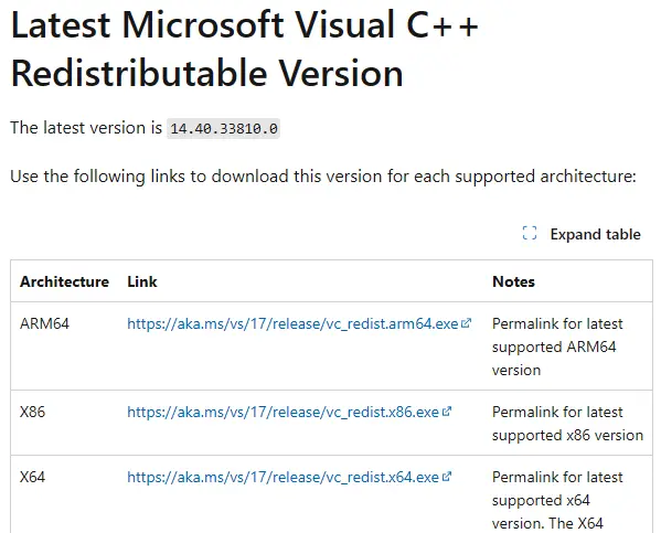Para garantizar que Fortnite se ejecute sin problemas en su computadora, debe instalar archivos de Visual C++ compatibles. Los archivos de Visual C++ son componentes cruciales del sistema, junto con DirectX, necesarios para una ejecución adecuada. Si se enfrenta al mensaje "Fortnite no se inicia en Windows 11", podría deberse a paquetes de Visual C++ obsoletos. Para resolver esto, actualice o reinstale el último paquete de Visual C++. Puede descargar e instalar la versión más reciente directamente desdeSitio web oficial de Microsoft.