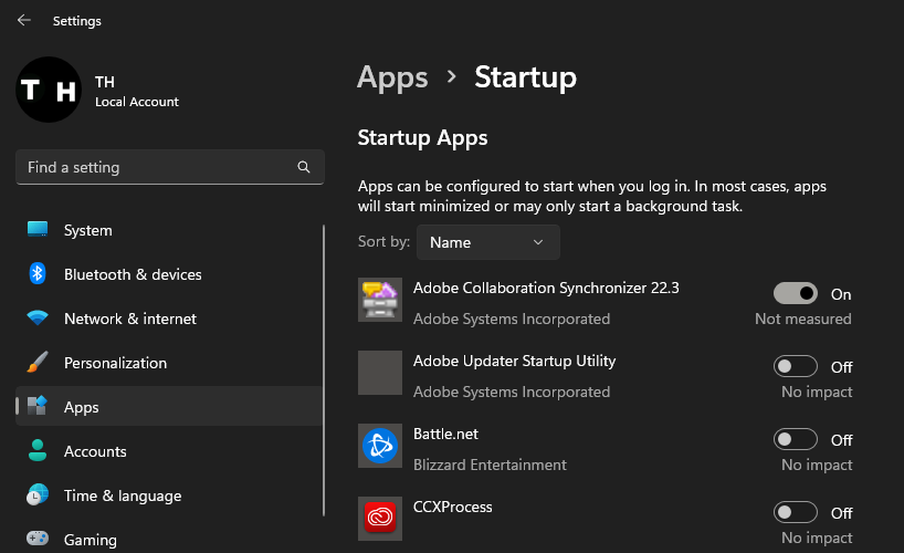 Configuración de Windows > Aplicaciones > Aplicaciones de inicio