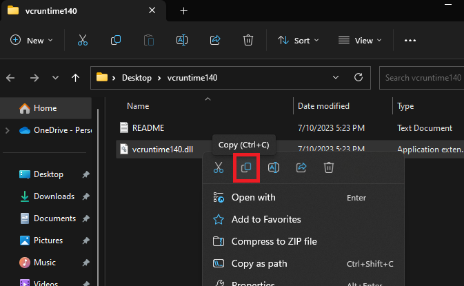 Copie el archivo vcruntime140.dll que falta