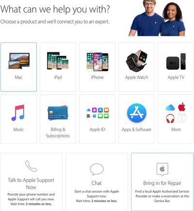 - Navegue a la página Obtener soporte en el sitio web de Apple.