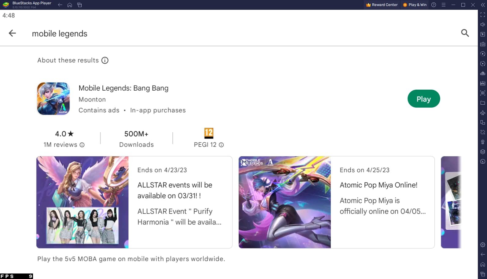 Abre tu Play Store e inicia sesión con tu cuenta de Google. Busque Mobile Legends y descargue el juego a su emulador BlueStacks. Esto puede tardar unos minutos en completarse dependiendo de su conexión de red.