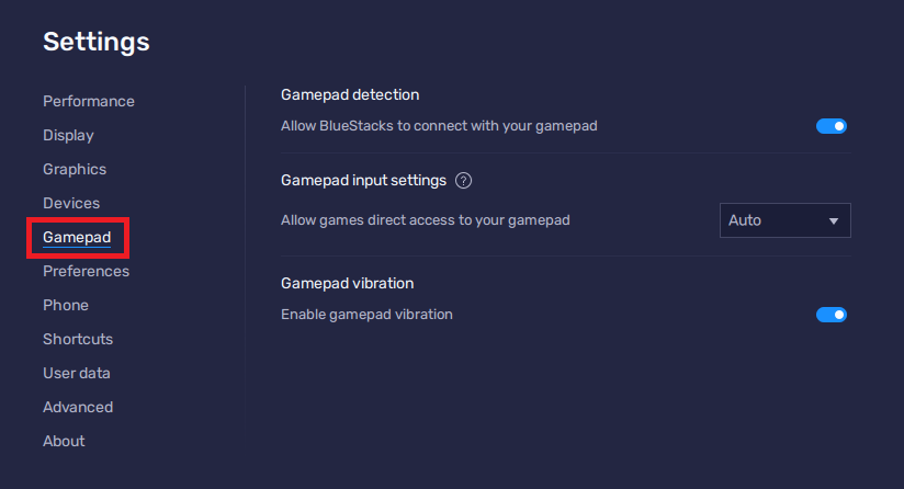 Mientras descargas el juego, tómate un momento para revisar la configuración del emulador. Haga clic en el ícono de ajustes para acceder a estas opciones. En la sección Gamepad, habilite "Detección de gamepad" para que BlueStacks reconozca y acepte entradas de su controlador.