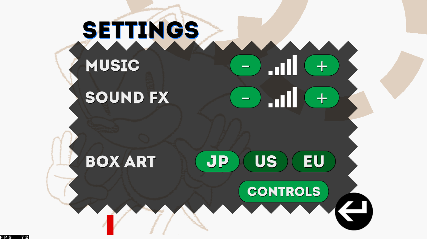 La configuración del juego te permite ajustar el volumen de la música y los efectos de sonido. También sugeriría reducir la opacidad del D-Pad cuando juegues Sonic The Hedgehog en tu PC o Mac.