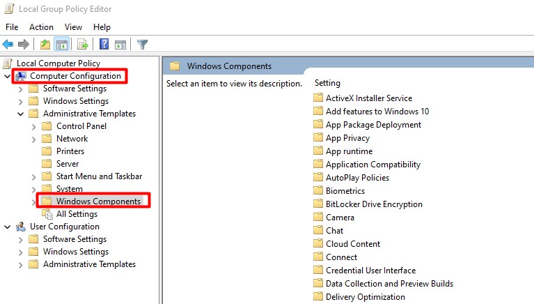 Paso 1:Navegue hasta la opción Editor de políticas de grupo local