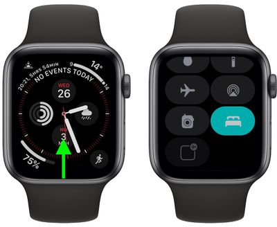 Al igual que en el iPhone, puedes activar y desactivar el modo de suspensión en el Apple Watch abriendo el Centro de control en la parte inferior de la pantalla.