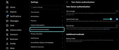 Algunos sitios tienen habilitada la 2FA para mensajes de texto de forma predeterminada, por lo que probablemente necesitarás explorar la configuración de seguridad o privacidad para habilitar el uso de una aplicación de autenticación. En las cuentas X (Twitter), por ejemplo, la opción se encuentra en el menú Configuración y soporte, en Configuración y privacidad ➝ seguridad y acceso a la cuenta ➝ Seguridad ➝ Autenticación de dos factores.