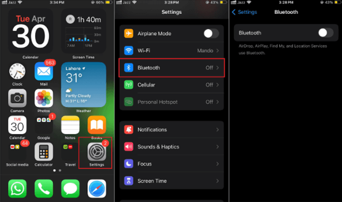 - Paso 3.Mueva el interruptor de Bluetooth a laApagadoposición y se volverá gris.