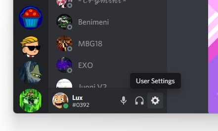 Abre la aplicación o juego donde quieras aumentar el volumen de entrada o salida de sonido. En este ejemplo, usaremosDiscordia, pero el proceso es prácticamente el mismo para cada aplicación. EnDiscordia, navega hasta tuAjustes.