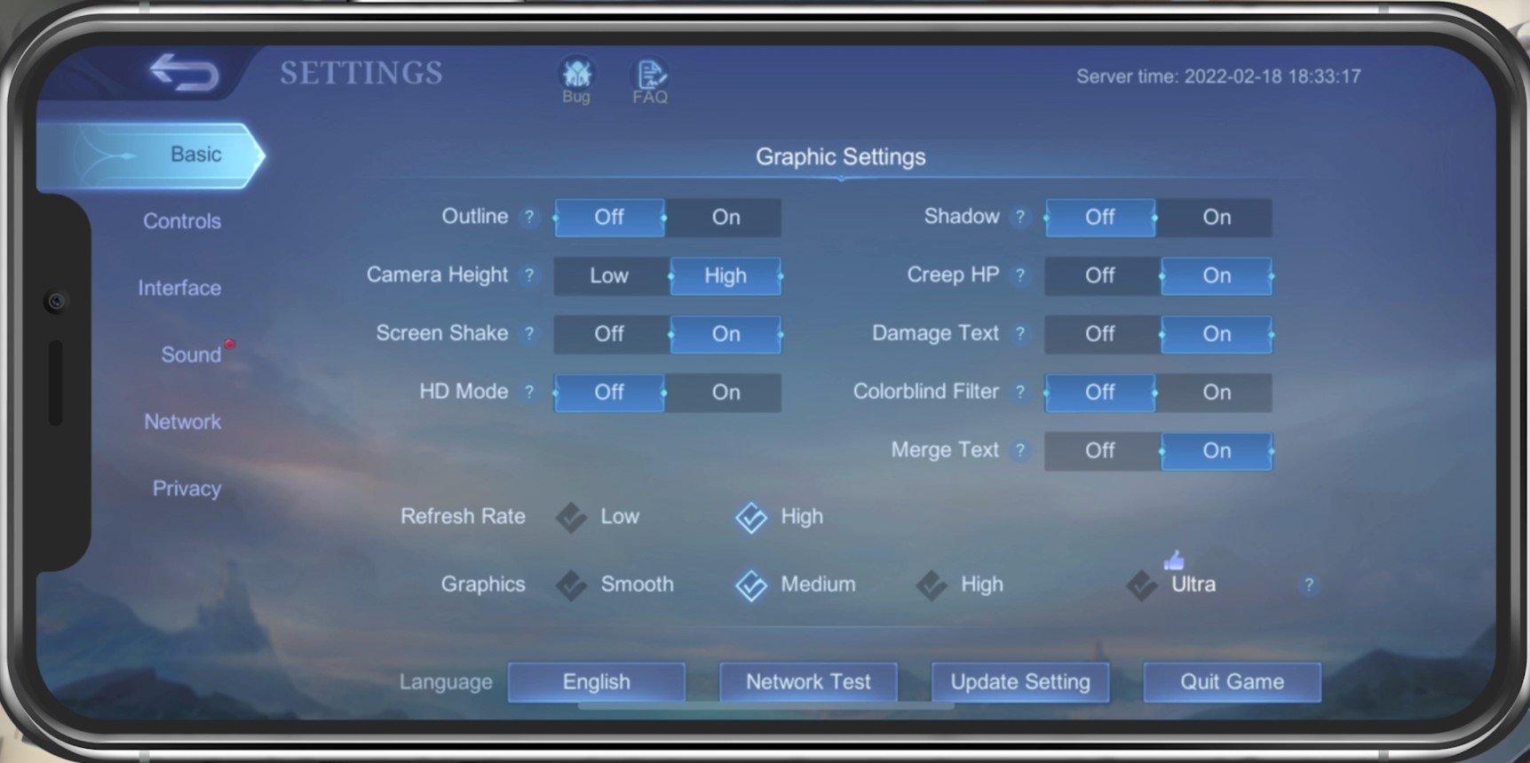Configuración de Mobile Legends> Básico> Configuración de actualización