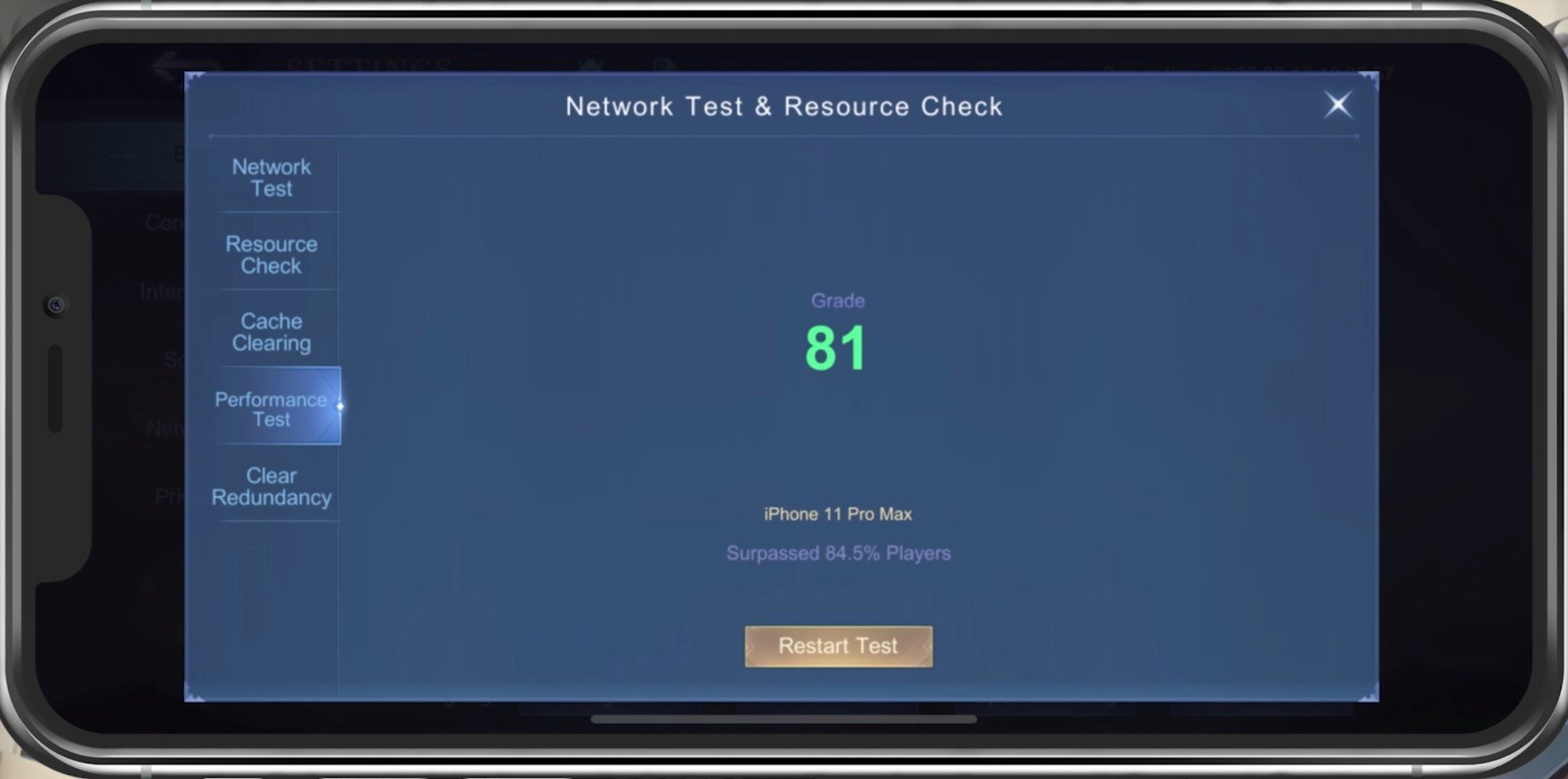 Configuración de Mobile Legends > Prueba de red y verificación de recursos