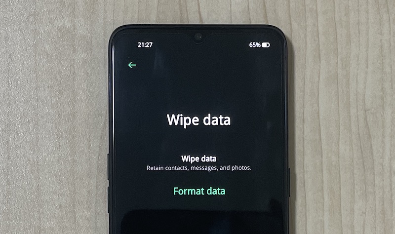 Paso 3: Seleccione "Borrar datos" > "Formatear datos" usando el botón de volumen y confirme con el botón de encendido.