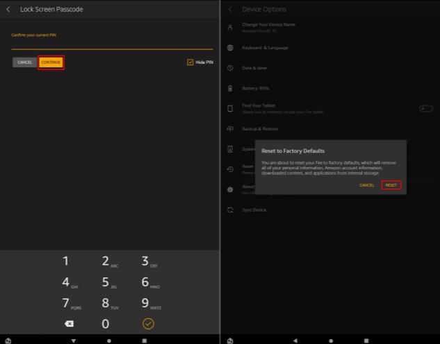 Método 2. Restablecimiento de fábrica de la tableta Amazon Fire mediante restablecimiento de PIN