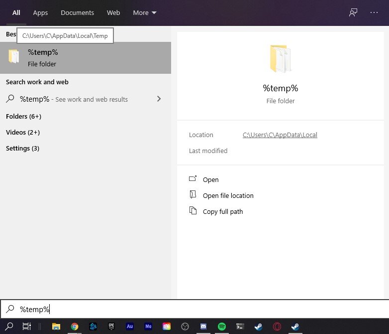 Si tiene dificultades para cargar mapas o descargar contenido adicional en Roblox, borrar sus archivos temporales puede resultar beneficioso. Para acceder a su carpeta de archivos temporales, escriba "%temp%" en la búsqueda de su barra de tareas. Puede eliminar de forma segura la mayoría de los archivos dentro de esta carpeta, aunque es posible que queden algunos; simplemente déjelos como están. Borrar archivos temporales puede ayudar a ordenar su disco duro, mejorando potencialmente el rendimiento de su sistema.