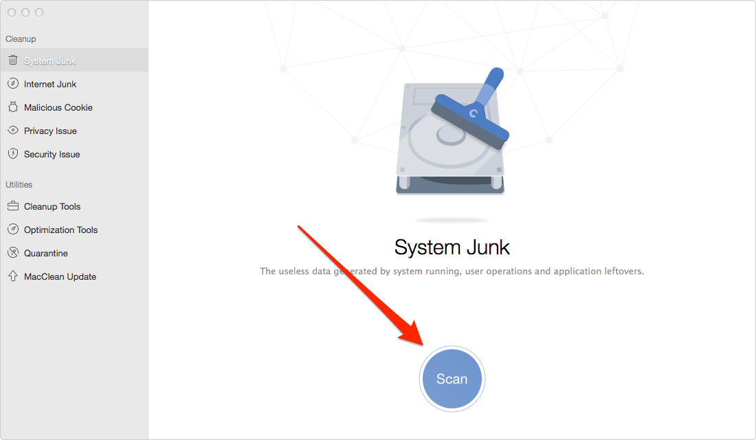 Paso 2. En el lado izquierdo de esta herramienta de limpieza de basura, puedes seleccionar cualquier tipo de basura para escanear en tu Mac. Por ejemplo, puede seleccionar Basura del sistema y hacer clic en Escanear.