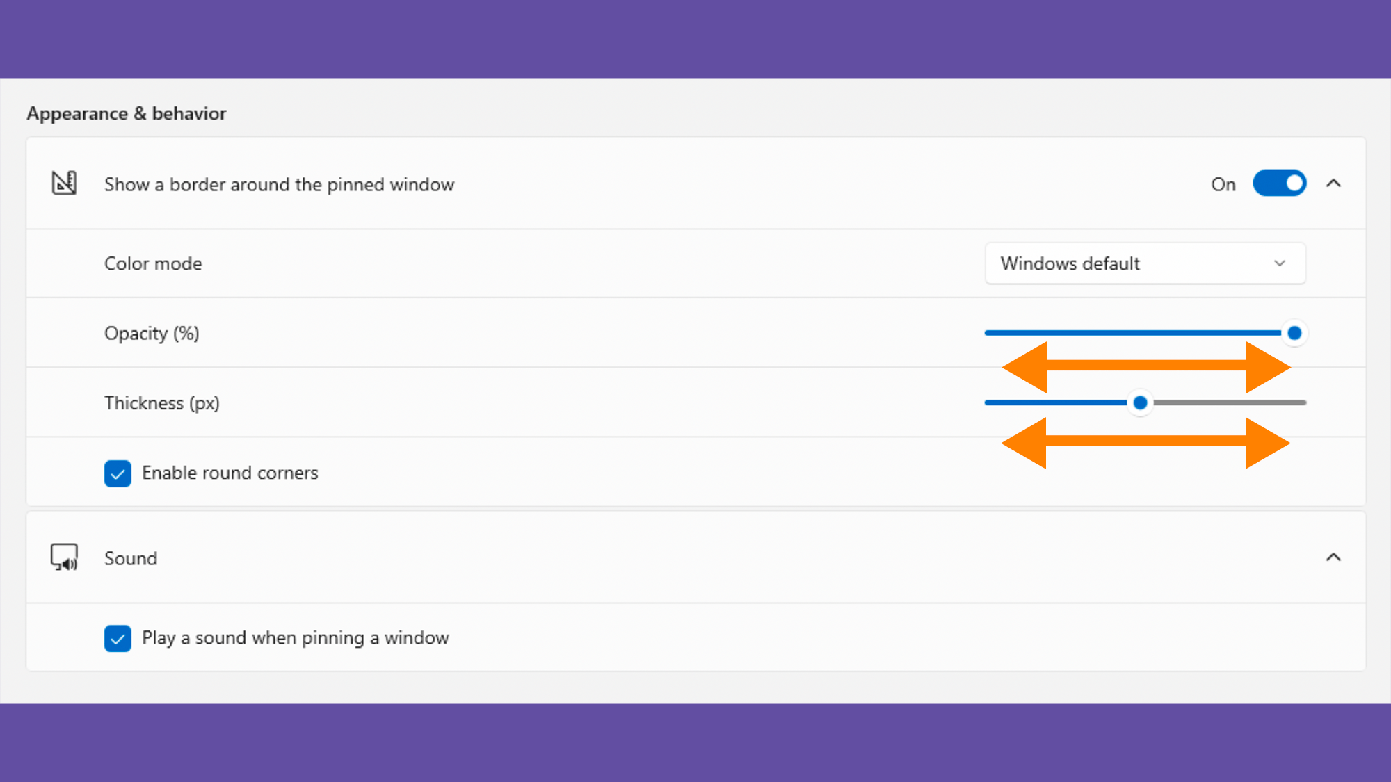 Finalmente, de forma predeterminada, hay un sonido cada vez que fijas y desanclas una ventana; puedes activarlo y desactivarlo en elSonidosección de configuración.